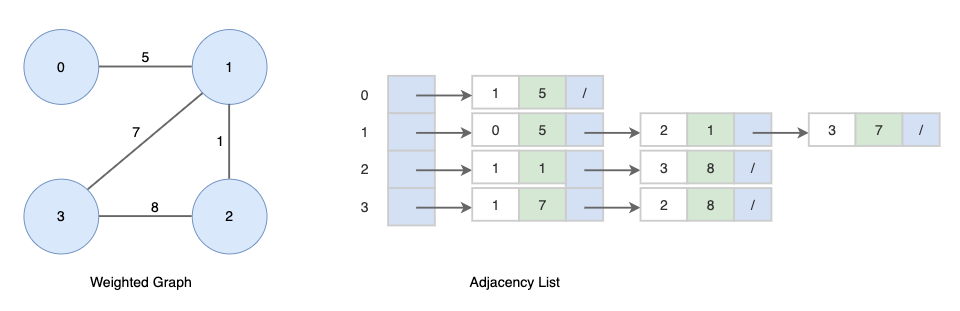 가중치 그래프에서는 가중치를 저장하기 위한 추가 필드가 필요합니다.