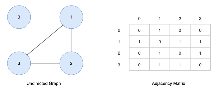 무방향성 그래프를 인접행렬로 표현하면 다음과 같습니다.