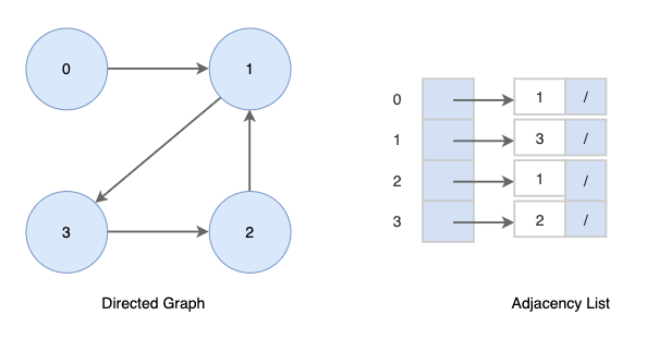 방향성 그래프를 인접리스트로 표현하면 다음과 같습니다.