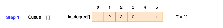 - in_degree가 0인 정점은 방문한 것으로 표시하고 큐에 정점을 추가합니다.
