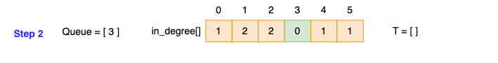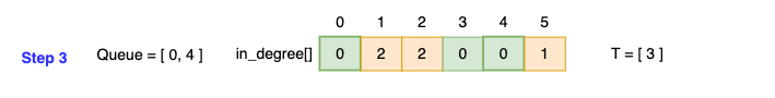 - in_degree가 0인 정점 3을 큐에 삽입하고 방문표시합니다.